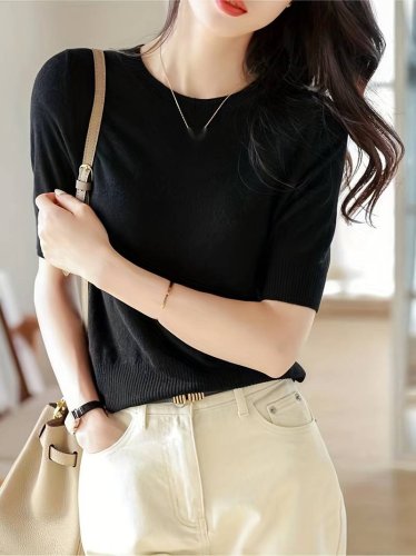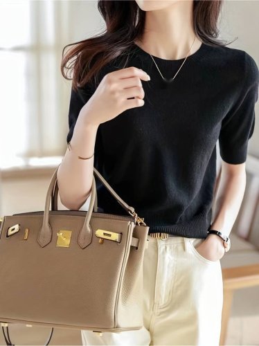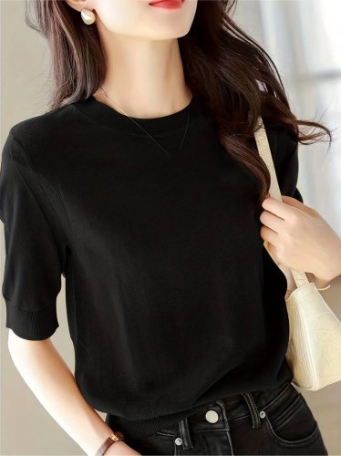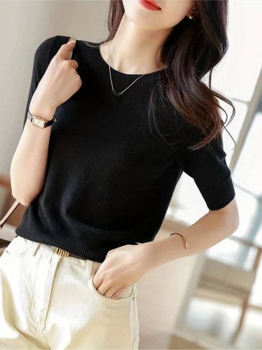 • Kadın kısa kollu bisiklet yaka triko bluz